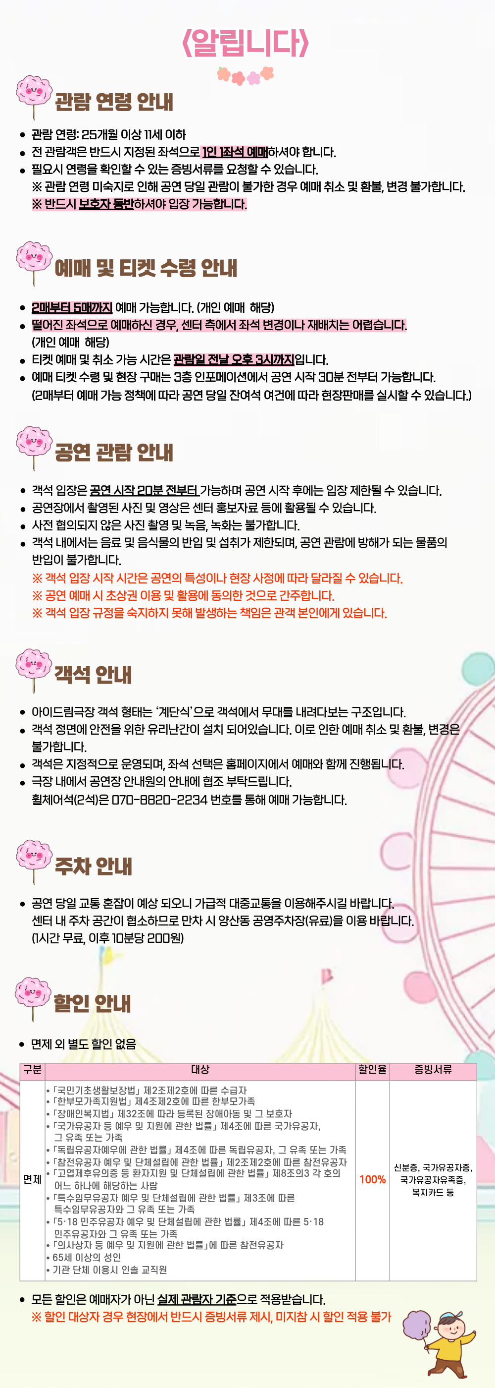 ※ 24개월 이하의 영유아는 입장하실 수 없습니다.