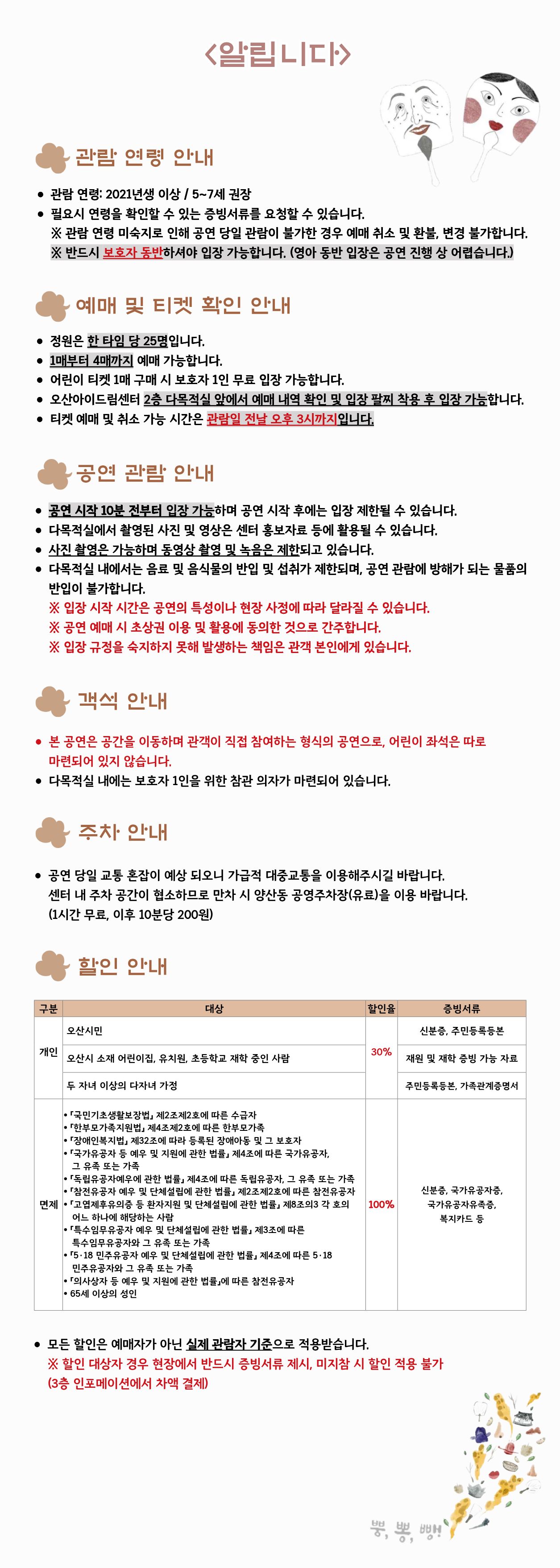 ※ 공연 예매 시 초상권 이용 활용에 동의한것으로 간주 됩니다.